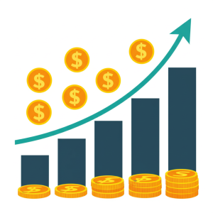 插圖:堆疊的硬幣與成長趨勢圖,象徵穩定收益與資本增值的雙重效益