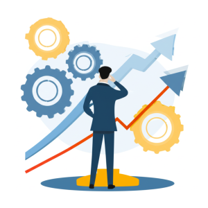 股市放大鏡插圖,象徵深入分析市場趨勢